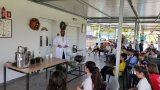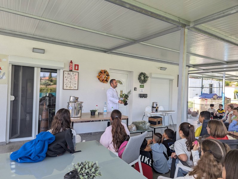 Ο κύριος Πάνος Πλατρίτης, ιδιοκτήτης του Aroma Park, τον οποίο και ευχαριστούμε ιδιαιτέρως, μίλησε στα παιδιά για τα βότανα και τα φυτά που χρησιμοποιούσαν οι πρόγονοι της περιοχής πριν 4000 χρόνια. Παρουσίασε, ακόμη, χρήσιμες πληροφορίες για τον αρχαιολογικό χώρο που βρέθηκε στο χωριό, την απόσταξη βοτάνων, την ιστορία των Κιστερκιανων Μοναχών,τον νερόμυλο, καθώς και την προέλευση του ονόματος του χωριού Πύργος. Επιπλέον, έγινε αναφορά πως στο χωριό μας, μεταξύ άλλων, διατίθεται μια βραβευμένη βιοτεχνία βοτάνων από το υφυπουργείο τουρισμού, ως heartland of legends, ίσως και τη μοναδική στο είδος της στην περιοχή.