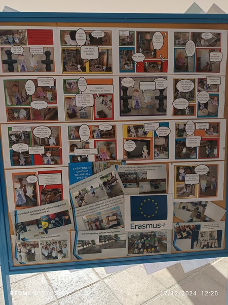 Με την έναρξη της σχολικής χρονιάς 2024-2025, οι συντονίστριες συναδέλφισσες Σοφία Δημητρίου και Μαρία Μιχαήλ, παρουσίασαν τους στόχους του προγράμματος, καθώς επίσης και εισηγήσεις δραστηριοτήτων σε συνεδρία προσωπικού. Παρουσιάστηκαν επίσης, δραστηριότητες που έχουν πραγματοποιηθεί την προηγούμενη σχολική χρονιά, στην πρώτη φάση του προγράμματος. Εν συνεχεία, οι εκπαιδευτικοί του σχολείου μας ανέλαβαν την ενημέρωση των γονέων στις συναντήσεις που είχαν. Παράλληλα, ετοιμάστηκε η πινακίδα Erasmus+, η οποία θα εμπλουτίζεται καθ’ όλη τη διάρκεια της χρονιάς με υλικό των δράσεων του προγράμματος.