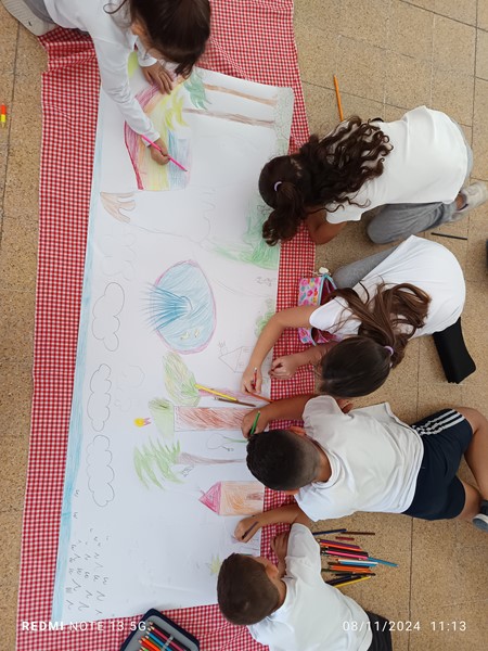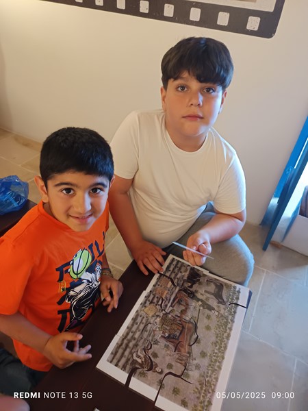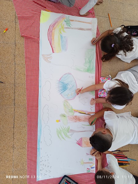 Τα παιδιά της Ε΄ τάξης, επισκέφθηκαν τον κύριο Δημήτρη Ευαγόρου σε μια προσπάθεια συλλογής πληροφοριών για τον μεσαιωνικό νερόμυλο του χωριού μας, με απώτερο στόχο τον εμπλουτισμό της εικονικής περιήγησης του χωριού μας που θα σχεδιαστεί σε συνεργασία με το Π.Ι. το επόμενο διάστημα. Σχεδίασαν τη συνέντευξή τους, οργάνωσαν τις ερωτήσεις τους και απόλαυσαν ένα απλόχερο, κυπριακό πρωινό με ζεστό ψωμί από τον κύριο Δημήτρη, τον οποίο και ευχαριστούμε ιδιαίτερα. Επιπλέον στο μάθημα της τέχνης ζωγράφισαν με θέμα τον μεσαιωνικό νερόμυλο όπου είχαν να “ζωντανέψουν” την εικόνα του νερόμυλου ζωγραφίζοντας ανθρώπινες φιγούρες και ζώα.