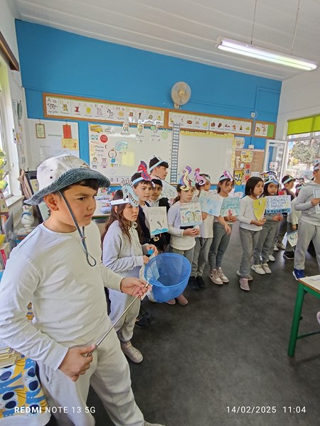 Στα πλαίσια του μαθήματος των φυσικών επιστημών τα παιδιά της Α τάξης αφού έμαθαν για την πλαστική ρύπανση και το πρόβλημα των σκουπιδιών αποφάσισαν να ενημερώσουν και την κοινότητα τους. Πραγματοποίησαν μια επίσκεψη σε γειτονικό μπακάλικο και εκεί έδωσαν συμβουλές στους καταναλωτές πως να ψωνίζουν ώστε να έχουν λιγότερες πλαστικές συσκευασίες και πλαστικές τσάντες.