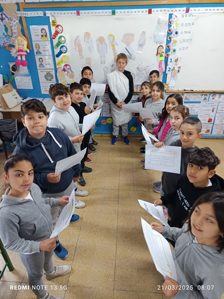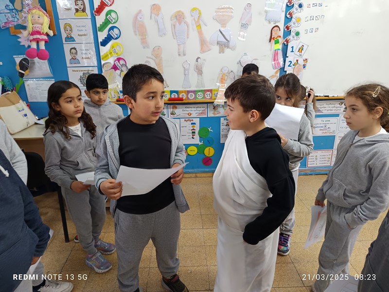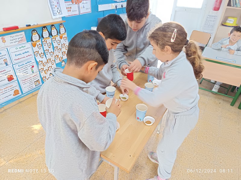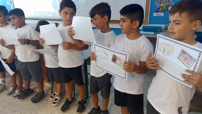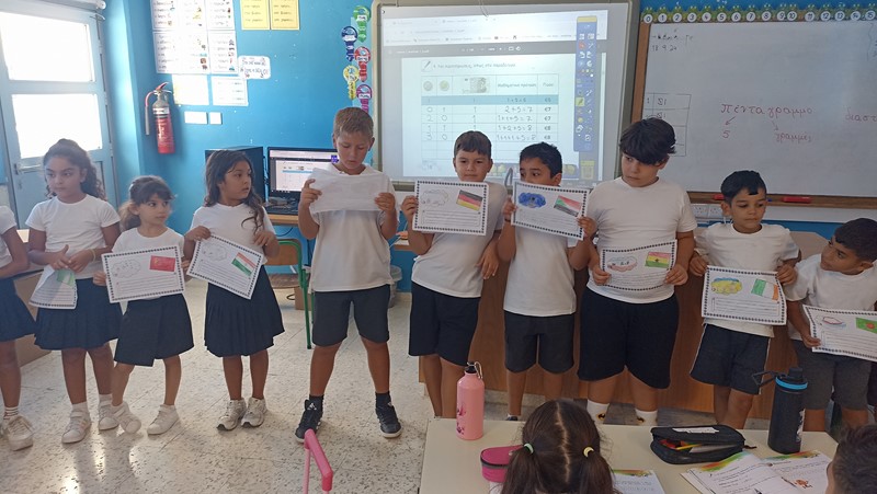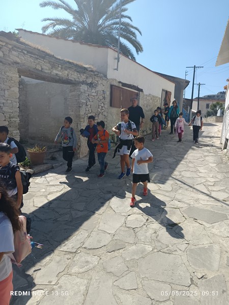Οι μαθητές της Β΄ τάξης, είχαν την ευκαιρία να μάθουν για την ιστορία, τις παραδόσεις και τα έθιμα της Κύπρου. Έφτιαξαν λεζάντες για παραδοσιακά εργαλεία και σκεύη, γνώρισαν τον Κύπριο ζωγράφο Μιχαήλ Κάσσιαλο, ανακάλυψαν τοπία του νησιού, έκαναν έρευνες και μελέτες για τις παραδόσεις και τα έθιμα του τόπου μας, γνώρισαν την τοπική κουλτούρα του «θέρου». Εκμεταλλευόμενοι τα οφέλη της υπαίθριας διδασκαλίας και μάθησης, επισκέφθηκαν το χωριό Ασγάτα, περπάτησαν στα λιθόστρωτα δρομάκια και ξεναγήθηκαν από τον κοινοτάρχη του χωριού κύριο Ανδρέα Μιχαήλ, τον οποίο ευχαριστούμε ιδιαίτερα για την όμορφη φιλοξενία. Μια ευχάριστη μέρα είχαμε με τη συνεργασία μας με τους συναδέλφους του Δημοτικού Σχολείου Ασγάτας με τους οποίους συνδιοργανώσαμε σταθμούς στο Μουσείο Αλευρόμυλου και Ελιόμυλου, αξιοποιώντας δεξιότητες που αποκτήθηκαν από τις κινητικότητες των εκπαιδευτικών. Οι σταθμοί περιλάμβαναν παζλ πινάκων του Μιχαήλ Κάσσιαλου, ντόμινο με παραδοσιακά αντικείμενα, κρυμμένο θησαυρό. Η μέρα μας ολοκληρώθηκε με παιχνίδια ποδοσφαίρου με τα παιδιά του Δημοτικού Σχολείου Ασγάτας.