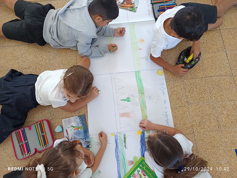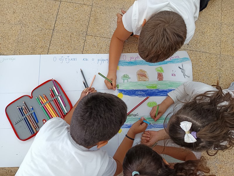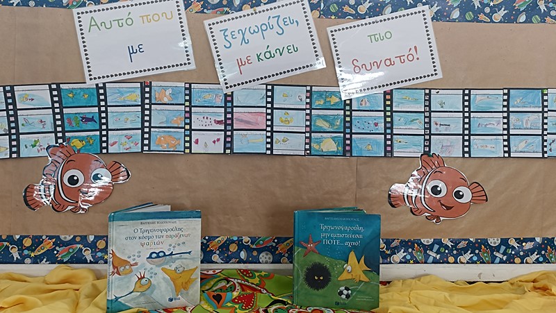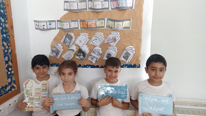 Μέσα στα πλαίσια καλλιέργειας φιλαναγνωσίας επεξεργαστήκαμε τα παραμύθια: «Σέβεν το χταπόδι», Λούκα Παναγή, «Η ποδιά της αγάπης», Λούκα Παναγή, «Ο Τριγωνοψαρούλης στη χώρα των παράξενων ψαριών», Βαγγέλη Ηλιόπουλου, «Το κόκκινο φόρεμα της Σαβέλ», Μαρίνα Μιχαηλίδου Καδή και «Ο Τριγωνοψαρούλης εναντίον του μεγάλου καρχαρία», Βαγγέλη Ηλιόπουλου. Αξιοποιήσαμε θεατρικές συμβάσεις στη διδασκαλία των παραμυθιών. Υποδυθήκαμε ρόλους τόσο μέσα όσο και έξω από τη σχολική τάξη, ανοίγοντας τα δώρα μας από το μπαούλο του συγγραφέα, καθίσαμε τους ήρωες στην καυτή καρέκλα και περπατήσαμε στους διαδρόμους της σκέψης. Μέσα σε αυτές τις δράσεις καλέσαμε τη συνάδελφο και συγγραφέα Μαρίνα Φιλίππου την οποία και ευχαριστούμε ιδιαίτερα, για την παρουσίαση του παραμυθιού: «Εγώ κι εσύ… ΜΑΖΙ!», της Μαρία Ιόλης Ευσταθιάδη. Καλλιεργήσαμε την αγάπη, την ισότητα και τη διαφορετικότητα. Φωνάξαμε δυνατά: «Αυτό που σε ξεχωρίζει σε κάνει πιο δυνατό!»