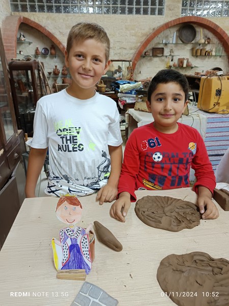 Μάθαμε για την τέχνη του πηλού και φτιάξαμε τα δικά μας πήλινα, χριστουγεννιάτικα στολίδια. Ακολούθησε ξενάγηση στο λαογραφικό μουσείο του αγγειοπλαστείου και μελέτη των εκθεμάτων. Τα παιδιά είχαν ετοιμάσει φιγούρες κόμικς πριν από την επίσκεψή μας εκεί τις οποίες και πήραμε μαζί μας. Οι φιγούρες μας πόζαραν κατά τη διάρκεια της εκδρομής μας. Εμείς επεξεργαστήκαμε τις φωτογραφίες και φτιάξαμε το δικό μας βιβλίο κόμικς, με τη βοήθεια του CANVA.